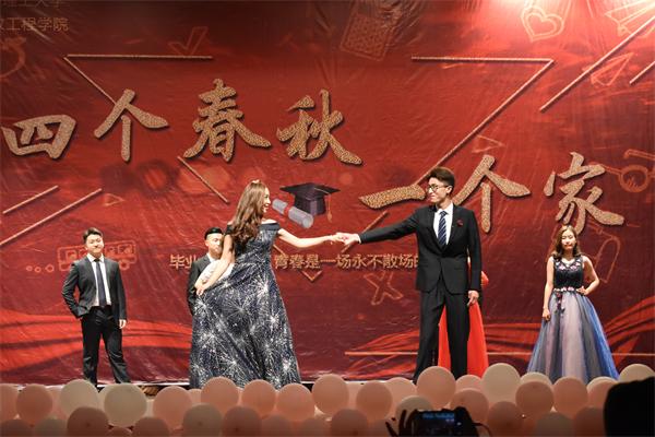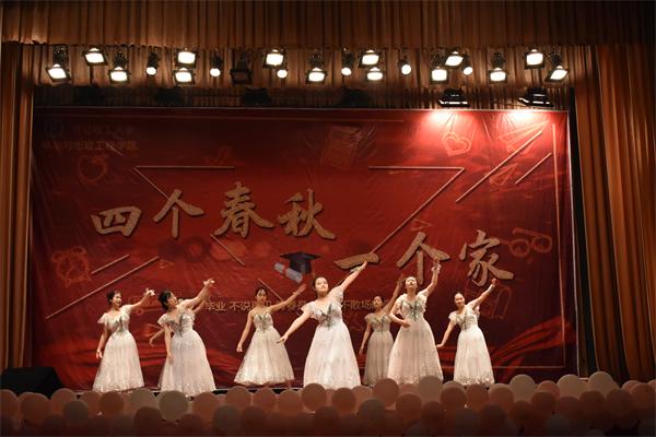 晚会尚未开始,幕布上播放了一段记录理工标志性建筑的视频,手绘与照片结合的形式美轮美奂,立即让观众切身理解了此次晚会“四个春秋一个家”的主题。伴随着开场舞《春天的芭蕾+Next Episode》的精彩表演,晚会正式开始。