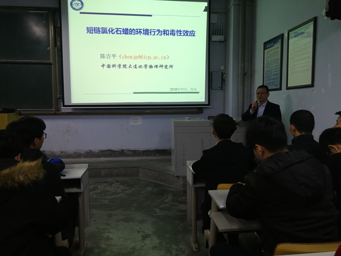 11月9日,中科院大连化学物理研究所陈吉平研究员来公司进行学术交流,并作了题为“短链氯化石蜡的环境行为与毒性效应”的学术报告。公司党总支马莉书记、经理毕学军教授、副经理孙英杰教授、经理助理马继平教授、化学教研室谭伟强副教授及公司部分青年教师参加了交流活动,公司研究生和本科生近200人聆听报告。