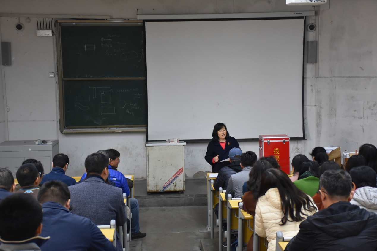 马莉书记传达了公司关于选举 “第七届教职工代表大会”教师代表的相关要求,大会对教师代表进行差额选举,经过现场投票最终选出12位教师代表,顺利完成选举。