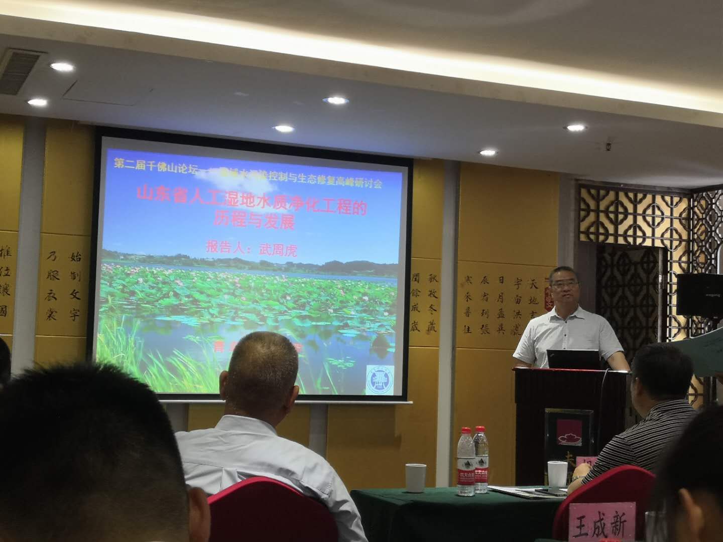 6月29日,由山东环境科学学会主办,山东省科公司等单位承办的“第二届千佛山论坛——流域水污染控制与生态修复高峰研讨会”在济南举行。会议邀请国内该领域的16位知名专家学者发表主题演讲。公司山东省有突出贡献的中青年专家、mk体育学术委员会主任、博士生导师武周虎教授,应邀作了题为《山东省人工湿地水质净化工程发展历程》的报告,武教授的研究生马景、李琪一同参加研讨会。