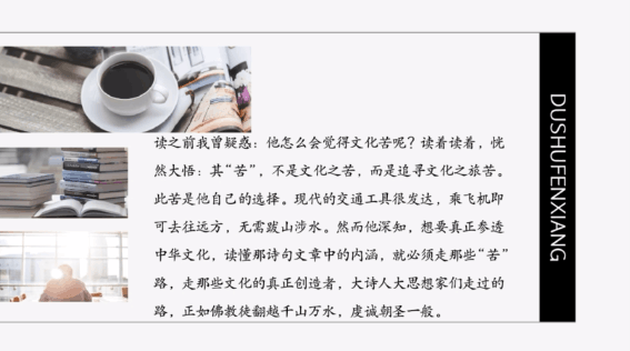 本次活动面向公司全体员工展开,环境学子踊跃报名。作品形式分别为视频拍摄讲解,ppt录屏讲解,word文档编写。同学们分享的书多种多样,包括经典著作、科幻小说及历史名著等等。同学们不仅介绍了读书的主要内容,还分享了各自的读书收获,心得体会。其中能动181曾翔推荐的书《习近平的七年知青岁月》,看到讲述者通过自己的亲身经历,用最真实的细节讲述了习近平总书记在知青岁月里,从没有放弃读书和思考的故事,看到北京知青陶海粟讲到习近平一直秉持着志当存高远,但要从身边的小事做起的原则,让同学们深受感动。水183赵莹莹推荐的《文化苦旅》讲述了对文化的领悟是需要亲身经历的,曾经所谓的旅行是多么的无知,只有一个人的苦旅,让孤寂与文化作伴才是真正的读懂这历史文化。部分同学表示,在书中不断提升自己,读书已经成为了他们的一种习惯。分享的作品已经陆续在微信平台线上推送。