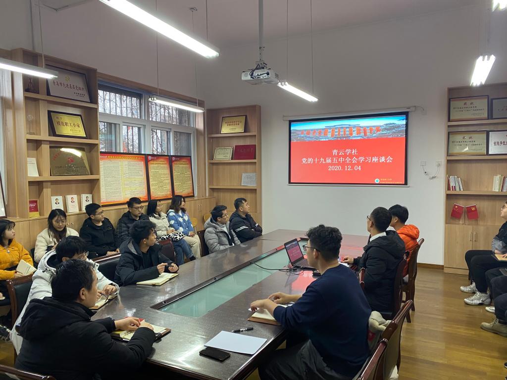 12月4日,mk体育青云学社举行学习党的十九届五中全会座谈会,公司党总支副书记邵长飞出席座谈会,辅导员王登榜主持座谈会,公司思政类社团青云学社相关同学参加会议。