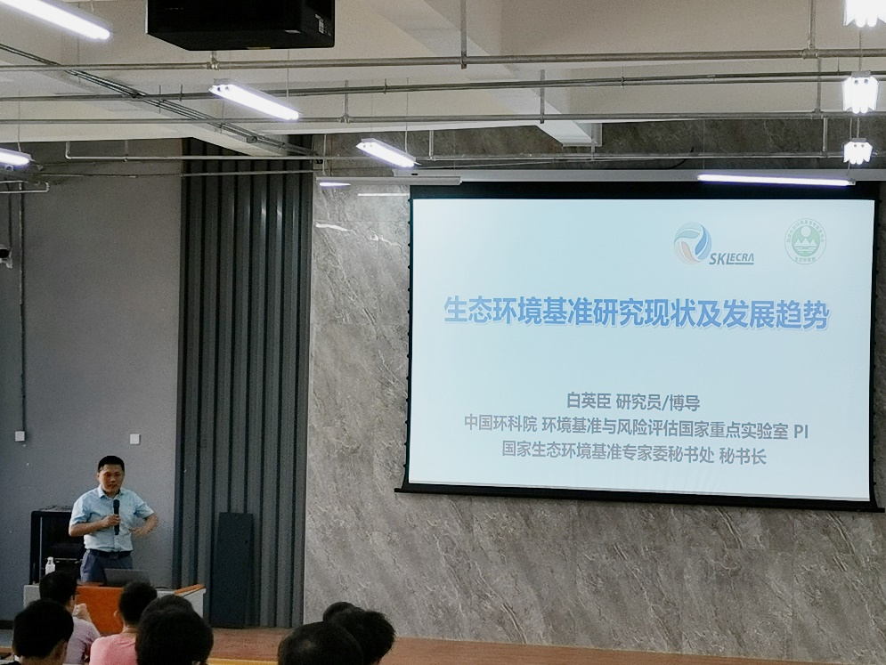 报告会上,白英臣研究员首先介绍了生态环境基准的定位、目标和作用,之后系统阐述了生态环境基准的国际研究现状与发展趋势,提出针对地理和地质条件差异、生态系统和人群暴露差异及社会发展阶段差异,着力构建符合我国国情和区域特征的环境基准体系,并对环境基准“十四五”规划的编制工作进行了简要介绍。最后,白老师为在场师生解答了关于环境基准的相关疑惑,并提出了建设性建议。