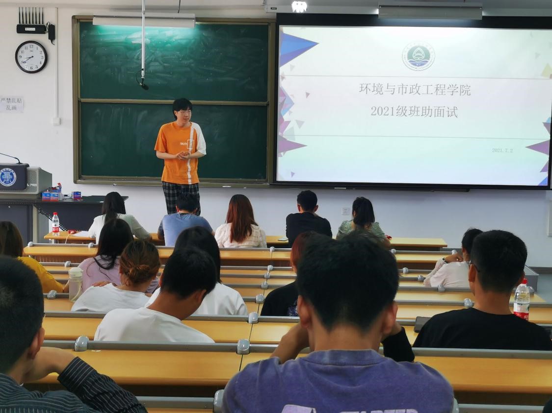 为帮助2021级新生尽快适应老员工活,7月2日上午,mk体育在嘉陵江路校区2号教学楼202教室开展2021级新生班助选拔工作,公司辅导员花会娟、董业硕、何珊珊、王登榜、宫克菲担任评委,来自2019、2020级的68名同学参加面试。