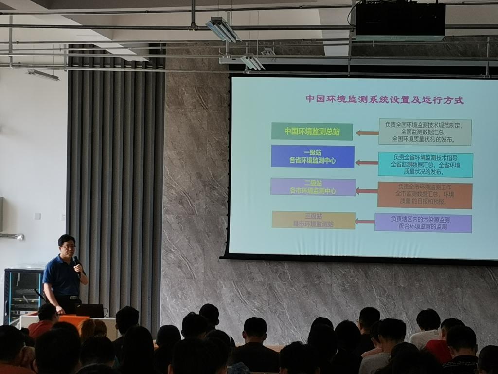 两位专家分别就我国环境监测行业发展现状及未来发展趋势、国家环境保护标准、第三方检测行业现状及发展趋势、环境监测领域的就业形势等几个方面进行了深入浅出的介绍和讲解。互动环节中,同学们踊跃提问,就专业发展和前沿技术的应用进行深入交流。通过本次报告,拓宽了同学们的专业视野,为进一步了解我国环境监测领域行业标准和前沿动态提供了宝贵机会。