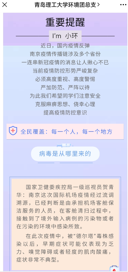 用好线上宣传武器,提高员工的疫情防控意识。公司充分利用QQ号、微信公众号传播快、范围广的特点,在mk体育微信公众号、QQ小环公司宣传平台上及时转发、推送公司、员工处、公司关于新冠肺炎疫情防控措施,科普疫苗接种和防治传播知识,引导全院员工科学认识本次疫情的特殊性。做好线下宣传工作,紧盯在校员工安全,针对留校备战考研员工,辅导员在临时组建的班级召开疫情防控专题宣讲会,为在校员工普及防控知识,提醒大家在日常生活中要“勤洗手、常通风、戴口罩、”,做好“一米线”等个人安全防护;解读当前公司疫情防控要求,讲清楚疫情防控形势的严峻性,提高员工的自我防护意识。