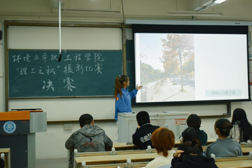 在决赛的现场,12名参赛者对自己的摄影作品从拍摄思路、拍摄手法等方面进行讲解,参赛作品各有特色,用真实情感记录心中的理工秋天。评委们综合选手的表现和作品的水准进行打分,对每幅作品都表示了认可,并提出更完美的创意方案。最终,环科211班刘雪缘、环科212班张方旭荣获本次比赛一等奖。活动会后,评委孙川表示:艺术源于生活而又高于生活,同学们在这次的比赛中很好地运用艺术视角记录生活瞬间,通过积极健康、主题新颖的作品传播校园正能量,使广大同学更加了解公司的发展变化。希望大家能够继续保持对摄影的热爱,继续利用镜头展现环境学子视角下的理工美好。