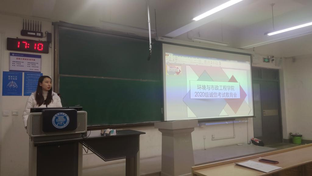 为进一步加强考风考纪教育,树立文明守信的良好风气,12月21日下午,环境与市政工程公司于一号教学楼B304教室针对2020级员工召开以“文明守信,诚信应考”为主题的诚信考试教育大会。2020级辅导员董业硕、宫克菲主持会议,2020级同学参会。