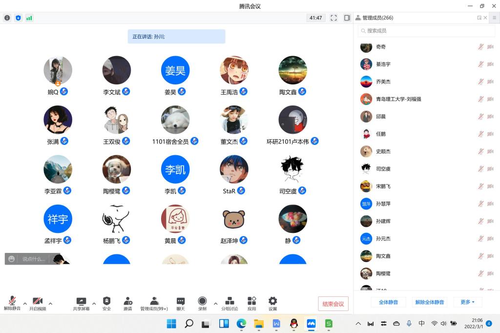 为及时传达公司开学相关工作安排、引导公司全体研究生以良好的精神面貌和积极的心态投入到新学期的学习和生活中,2022年3月1日晚举行2022年研究生开学第一课。因疫情防控原因采用线上会议的方式,会议由研究生辅导员孙川、贾婉琦主持,公司全体研究生参加。