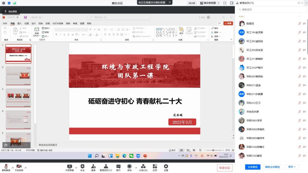 公司团委书记花会娟为公司全体团学干部讲授主题团课,深入解读《中共中央关于党的百年奋斗重大成就和历史经验的决议》的丰富内涵、核心要义、实践要求等,结合“四史”学习教育,引导青年员工深刻认识党百年奋斗的初心使命和重大成就,深刻感悟“两个确立”的决定性意义,增强“四个意识”、坚定“四个自信”、做到“两个维护”。