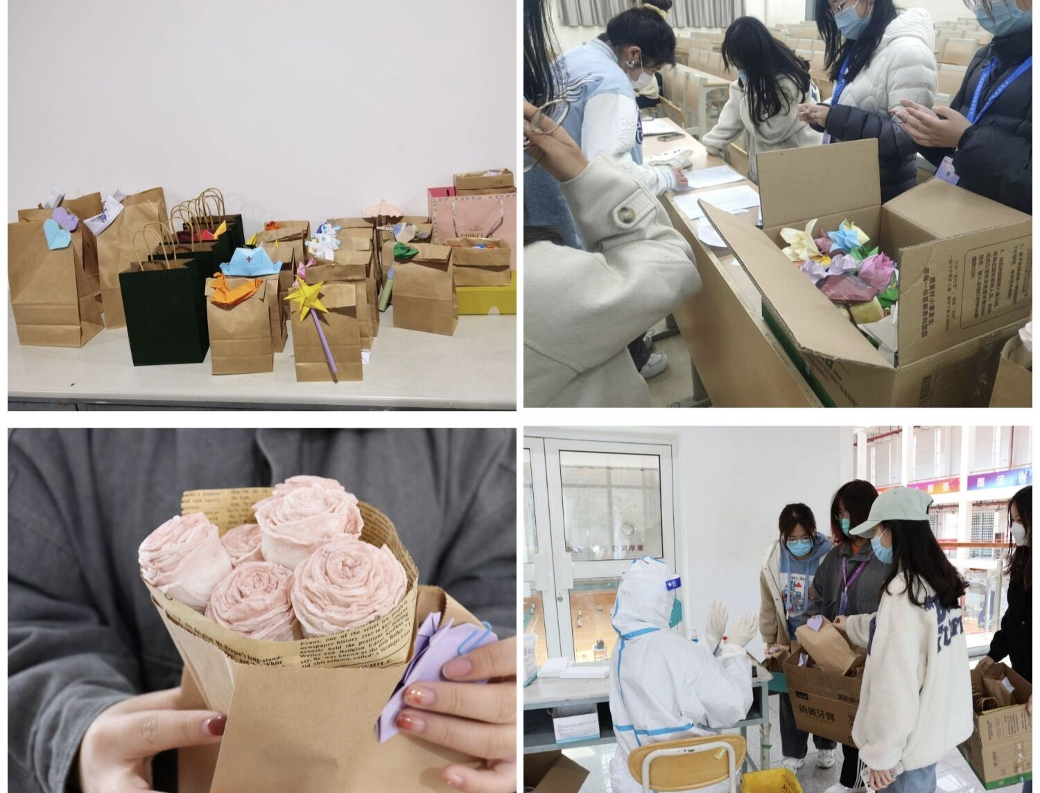 自疫情发生以来,医务工作者不辞辛劳,加班加点,校内外师生志愿者们也积极形成临时党支部,组成党员、团员“突击队”,参与到疫情防控中来,为校园生活的安全有序提供了保障,同学们看在眼里,记在心里。当前,疫情防控形势稳中向好,为感谢医务人员和师生志愿者的辛苦付出,环境学子们来到核酸检测点、来到校医院,纷纷通过手写感谢信,手折玫瑰花、百合花,大声说出感谢等形式表达对疫情防控工作人员的感谢。