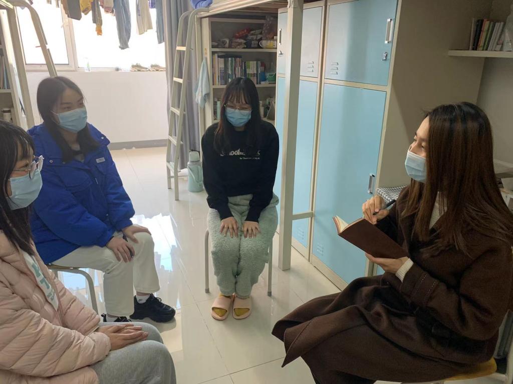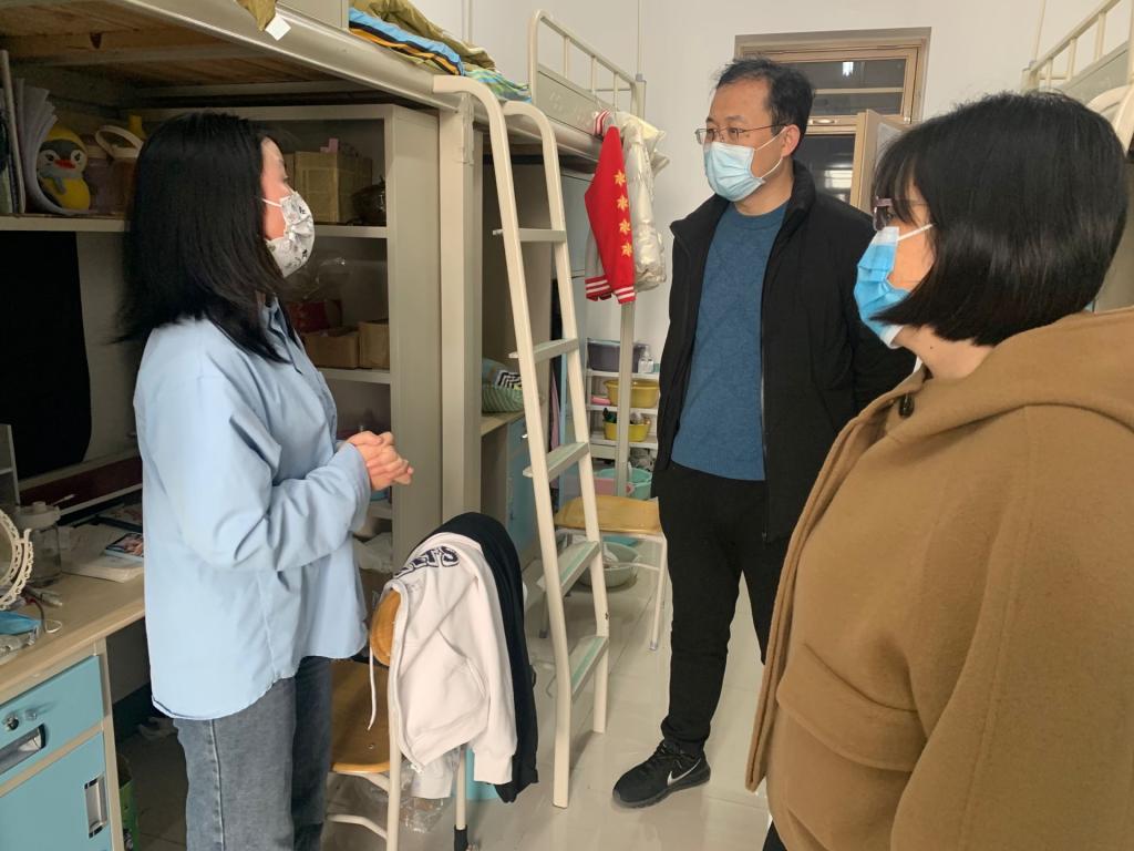 主动敲门,聚焦员工所思所想。在校园封闭管理期间,公司党委书记马莉、副书记隋学智以及全体辅导员,坚持每日深入员工宿舍,走访宿舍493间,累计135小时。和员工“零距离”“面对面”接触交流,全面了解员工生活状态和思想动态,让思想政治工作更加贴近员工、贴切实际、贴近生活,实现老员工思想政治教育的润物无声。马莉谈到,疫情防控对同学们是一堂思政大课,“越是特殊时期,大家越要认识国家为确保人民群众生命安全和身体健康做出的努力,构建战疫命运共同体的青春担当”。隋学智对同学们提出,线上学习模式启动,同学们更要加强自我约束,自觉践行文明行为,养成良好学习生活习惯。