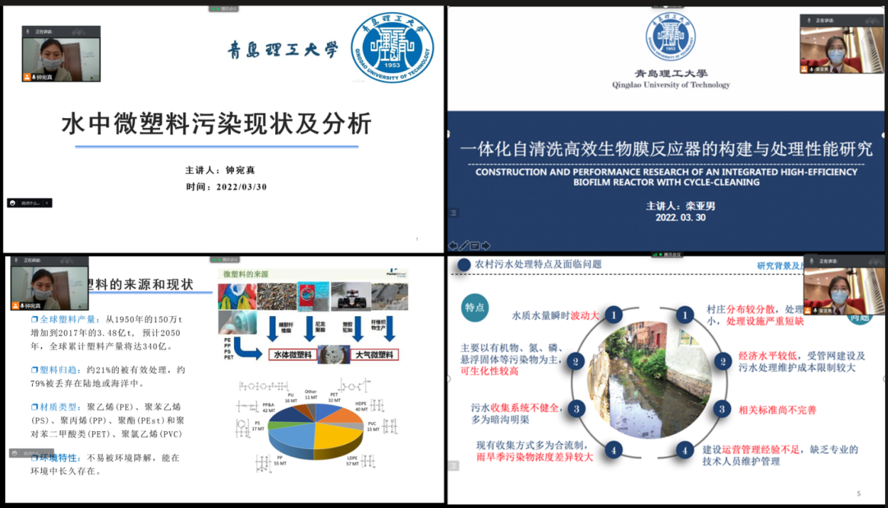 多样学术帮扶,绽放“青春科研之花”。担心疫情期间硕士学弟学妹们网课学习效果不足,公司21级博士生钟宛真、栾亚男主动担起责任,结合自己所学专业及研究课题,开展“环境Young学堂”学术帮扶课。博士钟宛真结合自己寒假期间作为硕博社会实践团成员开展现场调研帮扶的经历分享了调研经验和成果,以及如何将课题研究与实际应用相结合解决水体中污染物去除的问题。博士栾亚男根据对山东省农村地区污水处理现状的实地考察,对现阶段我国农村污水处理存在的问题及农村污水分散式处理工艺的课题研究进行了分享。两位博士结合个人经历的讲解模式,内容丰富生动、知识点梳理详实,得到硕士研究生们的一至好评。