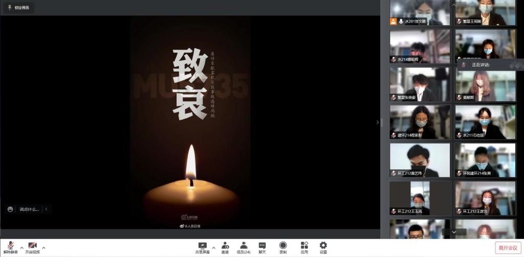 在会议开始前,全体成员肃立默哀,向英雄致敬,向“3·21”东航MU5735航空器事故中遇难的132名同胞默哀。随后,主题活动正式开始。贺文雅同学分享了2021年清明节繁星志愿者协会为缅怀先烈开展的“祭扫烈士陵园,缅怀革命先烈”志愿公益活动,她向大家介绍了传承、擎旗、守护三种祭扫方式,以表达对英烈的致敬。正如她所说:“对英烈的缅怀和尊敬,既是对初心的叩问,也体现着个体的良知和时代的温度。”