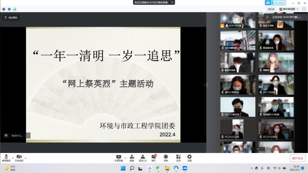 为引导员工树立民族自尊心与自信心,弘扬伟大的中华民族精神,真正把爱国之志变成报国之行,4月3日晚9点,mk体育繁星志愿者协会于线上开展“网上祭英烈”主题活动,繁星志愿者协会全体成员正装参会。