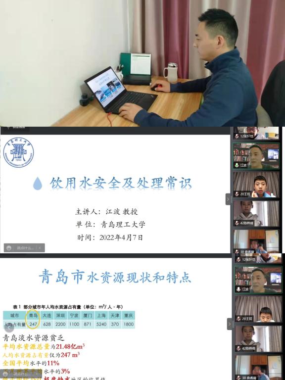 践行使命,让环保课堂更具思政感。环保科普宣讲团的教授们在进行环保知识宣讲的同时将课程思政理念融入讲座中,青岛市优秀共产党员孙英杰教授专业研究固体废弃物处理,积极履行环保人责任,以《做好垃圾分类,践行初心使命》为主题面向青岛市麦岛中学的中员工们宣讲习近平生态文明思想,讲授为什么要垃圾分类、如何进行垃圾分类,以详实的数据和生动的案例告诉同学们垃圾分类的社会效益和环境效益,宣讲过程中他说:“做好垃圾分类应提高环境意识、法律意识、文明意识,根本目的是为了人民的美好生活,为了实现中华民族的伟大复兴。”