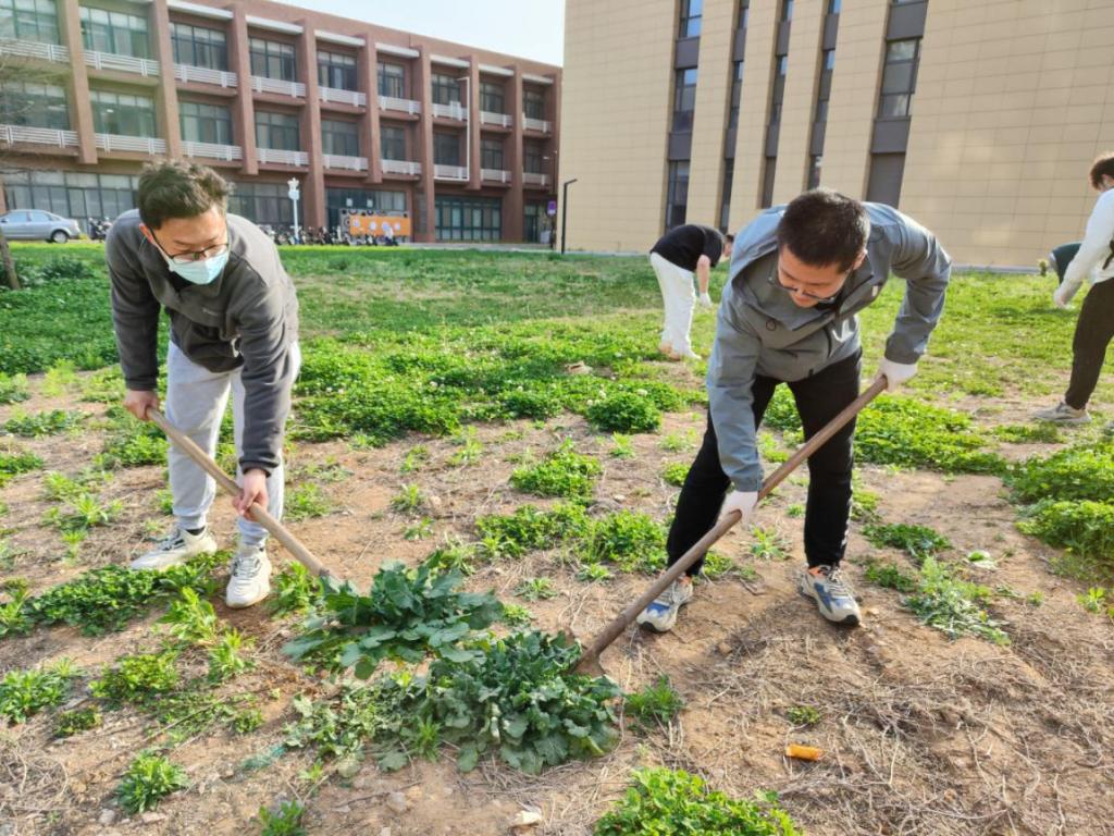 “这块地方是我们的绿色责任区,我们计划种植耐冬、小叶女贞,点缀花期比较长的植物,希望第一次实验能够成功!”环境工程213班劳动委员贾智博说。植物的茁壮离不开同学们的呵护,后期,个性化种植区将分区域、分工种让同学们体验并守护植物的生长。
