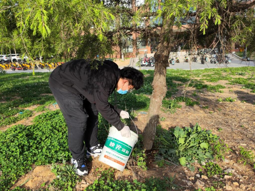 “除杂草时应采用蹲姿作业,不要坐地和弯腰寻杂草,运用辅助工具将草同草根一起铲除,不能仅将杂草地上部分去除……”后勤管理处园艺师带领同学们进行除杂劳动,并现场教授除杂草窍门。环境科学专业员工孟迪说:“画工图与除草都需要耐心和细心,才能事半功倍完成作业”。