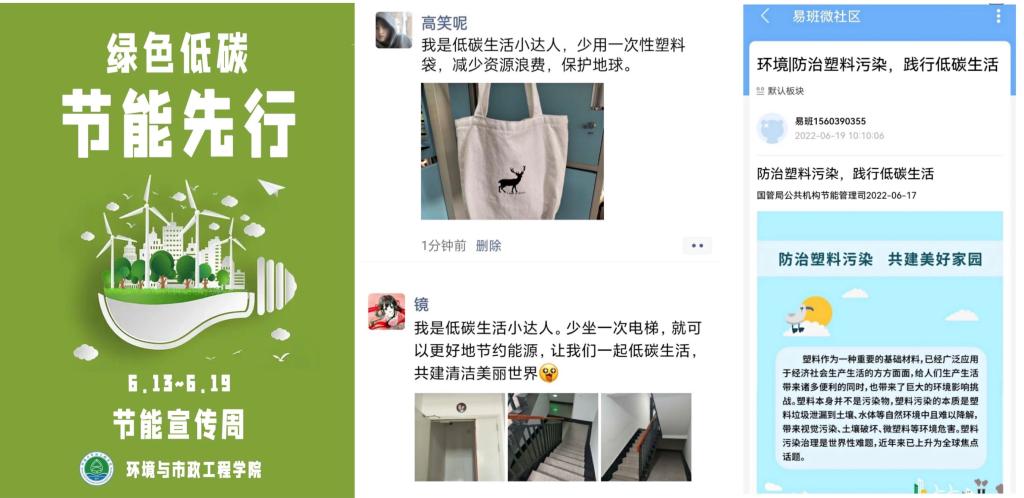 为深入践行习近平生态文明思想,贯彻新发展理念,倡导绿色低碳生活方式,在全国节能宣传周和全国低碳日到来之际,环境与市政工程公司通过开展以“绿色低碳、节能先行”为主题的系列活动,充分调动广大师生积极参与生态文明建设,树立和普及生态文明理念,形成文明、节约、绿色、低碳的消费和生活方式。