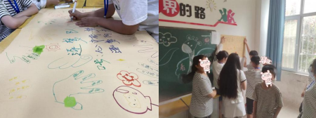 为了让孩子们在学习娱乐中了解“绿水青山”,在艺术创作中表达自我,提高思维能力,向日葵志愿服务小队开展了趣味横生的绘画活动,通过生态环境的审美教育,使孩子们领会自然的美好,进而增强保护生态环境的意念。创作过程中,孩子们充分发挥主观能动性,将心中的环境美通过画笔展现出来。绘画结束后,四个小组进行了展示与评比,并阐述个人的画画理念。