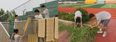 活动期间,团队成员将“劳动”与“感恩”相结合,以“劳动最光荣”为主题,为孩子们带来了一次别开生面的劳动教育课。7月27号上午,向日葵志愿服务小队组织孩子们搬运寝室用具至操场进行晾晒。意想不到的是孩子们不论年龄大小,都争抢着搬运寝室用具。在晾晒清洗寝室用具之后,孩子们看到叔叔阿姨们在辛苦除草,于是自觉加入了除草队伍,化身“除草小卫士”,为净化校园环境贡献出了自己的一份力。