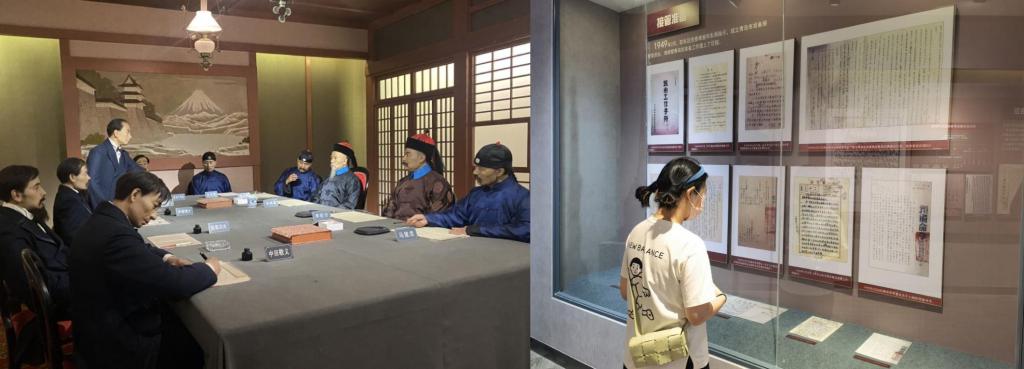 随着讲解的深入,实践团成员们看见了李鸿章先生马关谈判场景。中国被迫签订了《马关条约》,不仅要支付巨额战争赔款,还要割让台湾、澎湖等领土,开放通商口岸等,中国半殖民地化程度也因此进一步加深。作为北洋海军的成军地和覆没地,刘公岛见证了中华民族由盛到衰、再从生死边缘走向伟大复兴的历史进程,更是中国梦的起始和发轫之地。作为中华民族百年兴衰的重要转折点,今天的刘公岛如一艘“不沉的战舰”,依然屹立于陆海之间。甲午硝烟虽已散去,但民族英雄的血脉仍然流传,那融进血脉的红色基因,仍在时代的发展中流淌。