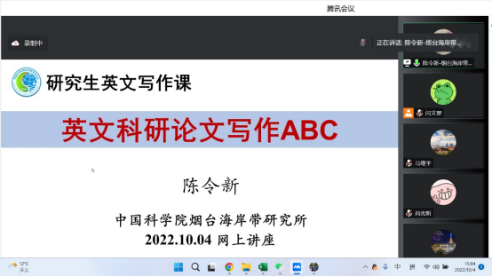 2022年10月4日,中国科公司烟台海岸带研究所研究员、博士生导师、国家有突出贡献中青年专家、泰山学者陈令新研究员应邀为mk体育广大师生作了题为“英文论文写作ABC”的专题报告。会议采用线上方式,mk体育共150多位师生听取了报告,会议由副经理马继平主持。
