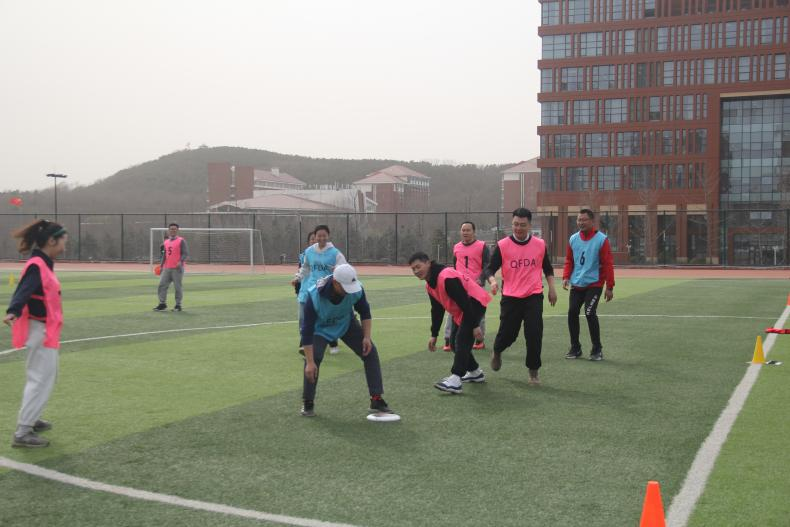 开场比赛由教工队对战员工队,同学们本着初生牛犊不怕虎的精神积极传接飞盘,老师们也拿出十二分的精神积极应战,为大家呈现了一场精妙绝伦的比赛,也激起了其他选手的参赛热情。师生赛的开展,让大家在工作、学习之余能够通过体育活动来促进交流,增进师生感情。除了师生赛,其他团队的表现也可圈可点,旋转的飞盘,奔驰的脚步,无不体现着员工团结协作、努力拼搏的意志品质,即使比赛临近尾声也绝不放弃!