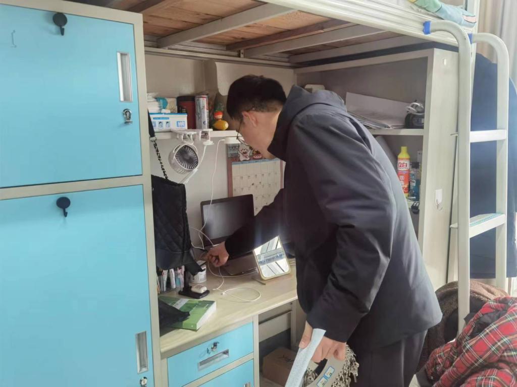 排查过程中,辅导员老师向同学们耐心讲解寝室消防安全相关规章制度并敦促班长、宿舍长、楼层长等进一步加强日常消防安全隐患的监督排查。从检查情况看,大多数宿舍均能做到规范用电,有较强的安全意识,未发现易燃易爆、违规电器和管制刀具等危险品,对于存在有员工在离开公寓后仍然将充电宝放在书桌上充电的情况予以了批评教育并现场开具整改通知书。