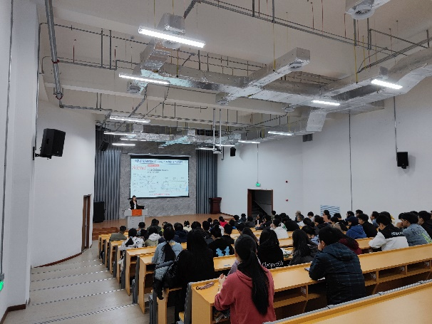 宋昕结合自己在国内外的学习、工作经历,围绕新污染物PFASs详细阐述了典型垃圾填埋场周边环境中PFASs的赋存特征、PFASs-氯代烃复合污染、热激活过硫酸盐的原位修复研究,以及土壤PFASs污染修复面临的挑战。报告中分享了团队近些年研究垃圾填埋场周边地表水、底泥、地下水、土壤和植物中PFASs赋存水平、传输规律和健康风险, PFASs典型替代物HFPO-DA在包气带中的迁移规律,复合污染场地氯代烃对PFASs赋存与迁移的影响等方面的最新成果。报告讲解生动形象,内容新颖全面。互动环节,在场师生踊跃提问,宋昕就污染土壤的修复过程及环境影响等问题与在场师生进行了深入交流与探讨,现场气氛融洽热烈。