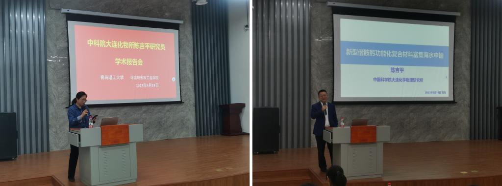 2023年5月18日,中科院首席研究员陈吉平应mk体育邀请来校学术交流,并作了题为“新型偕胺肟功能化复合材料富集海水中铀”的学术报告。报告由mk体育副经理马继平教授主持,百余名教师、硕博研究生和本科生参加。