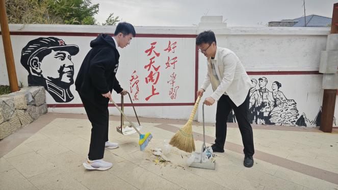 开展志愿服务,贡献青春力量。在活动的过程中,党支部与身边游客共同开展了环境美化志愿服务活动。撸起袖子,手拿扫帚、垃圾夹、簸箕等工具,对毛公山地面、边坡的纸屑、烟头等废弃物进行清捡。大家干劲十足,脸上洋溢着笑容。经过志愿者的清扫,毛公山景区周边环境得到了明显改善。党员们用实际行动为毛公山美好生态环境贡献力量,展现当代青年学子不怕苦、不怕累的精神风貌。
