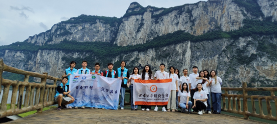 沿着盘山公路来到乌江源百里画廊,实践团被眼前壮丽的景色惊艳到了。起伏的山脉、蜿蜒的江流和蓝天白云交相辉映,构成了一幅大自然的壮丽画卷。在这里,实践团偶遇西南大学研究生社会实践总队,共同开展了一场行走的经验交流分享会。在交流中,大家纷纷表示:“深刻感受到锦绣山河,国富民强,人民幸福。”