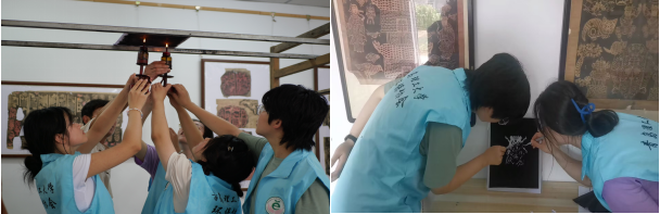 2023年8月1日,实践团队来到平度市石桥沟东村,通过参观民俗博物馆对“熏画”这一非遗文化的历史文脉和发展有了更全面的了解。随后在非遗传承人——艾松林的带领下,团队成员亲自动手参与了熏画的剪样、熏烤等工艺,近距离感受到了非遗文化的魅力。非遗文化中所展现的传统工艺的技艺之美、匠心之美和中华文化的传统之美、生活之美都深深感染了实践团每一位成员。