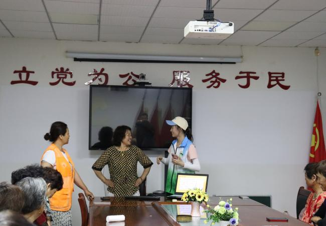 7月20日晚,实践团来到九龙街道南辛庄居委会,为当地老人们上了一堂丰富多彩的暑期健康安全知识宣讲会。团队成员通过讲解和互动等形式向老人们宣讲了暑期健康安全的相关知识。其中,团队成员重点强调了老年人在夏季容易受到高温天气影响的情况,特别是中暑和其他健康问题。为此,他们为老人们提供了一系列有益的健康建议,以确保舒适的居住环境。在宣讲会的最后,讲解员着重介绍了海姆利克急救法,这一方法旨在帮助老人们在紧急情况下能够正确、迅速地采取行动,为他们的健康安全提供必要的支持和保障。