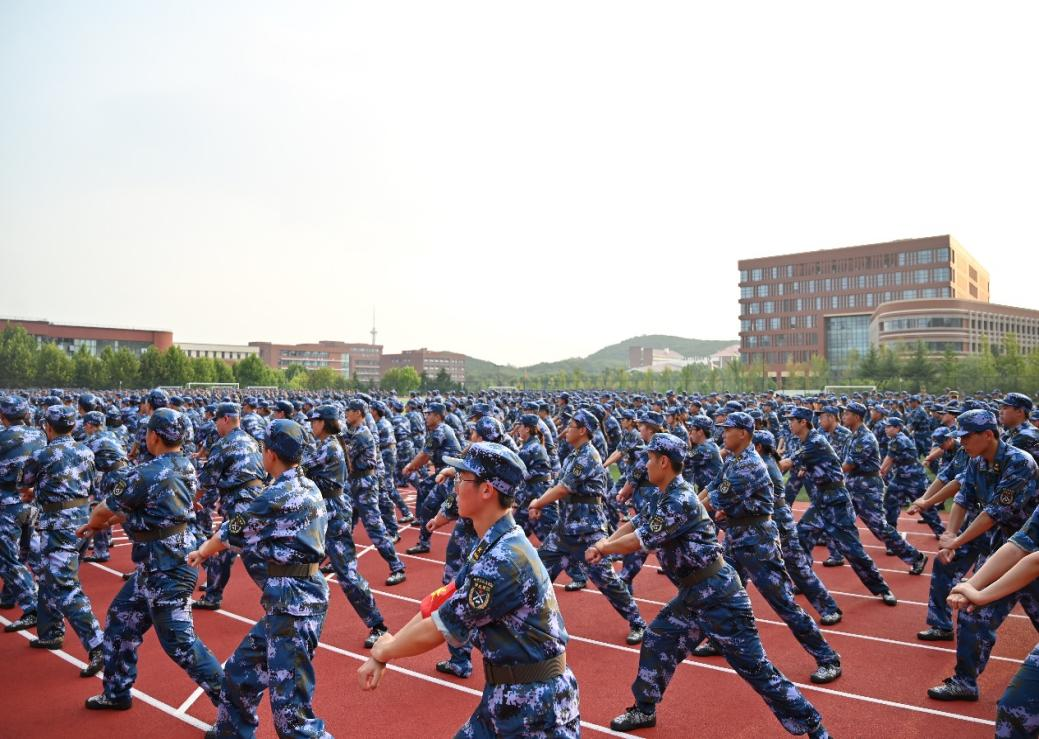 迎着微风,同学们精神饱满,军姿飒爽,整齐划一,口号响亮,在行动中感受中国军人的强大与坚毅,同时也展现了环院学子的昂扬姿态。跨立,蹲姿,摆臂,跑步,四面转法,军体拳是军训的必修课,是同学们需要掌握的最为基本的军事技能,也是员工意志力的有效途径。