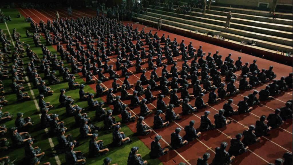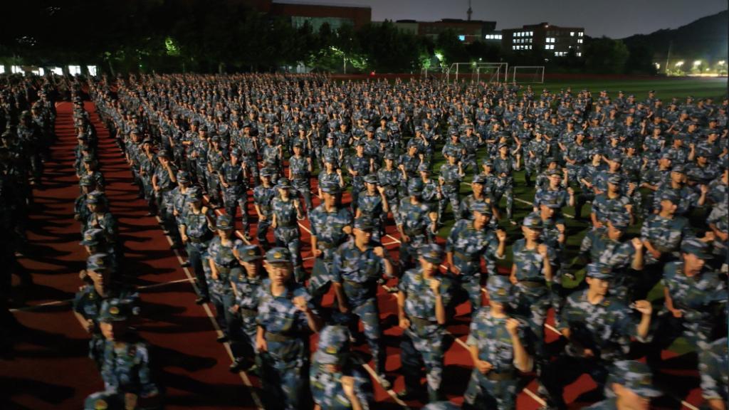 晚风清凉,夜训不减热血。相较于白天的日常训练,夜训少了炎热酷暑,晚风清凉,使得灯光下的同学们与嘹亮的口号声结合更令人震撼。伴随着强有力的吼声,一招一式都恢弘霸气,如猛虎下山,威武雄壮!