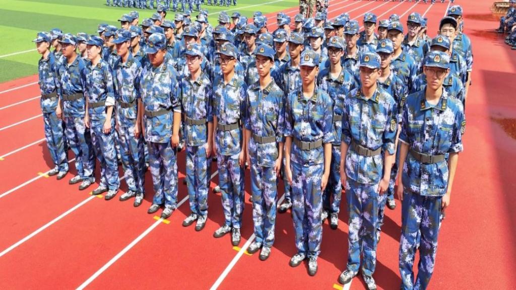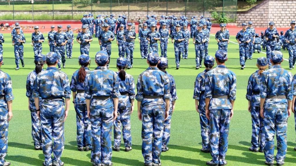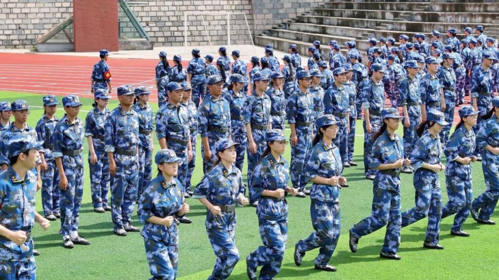 无数遍的队列演练,无数回响亮的口号,无数次反复的动作让同学们少了份娇气,多了份坚强;少了份依赖,多了份坚强;少了份怨天尤人,多了份团结奋进。他们身着海蓝色迷彩服,在训练场上汇聚成蓝色的海洋,在轻柔的微风里散发着青春的气息。