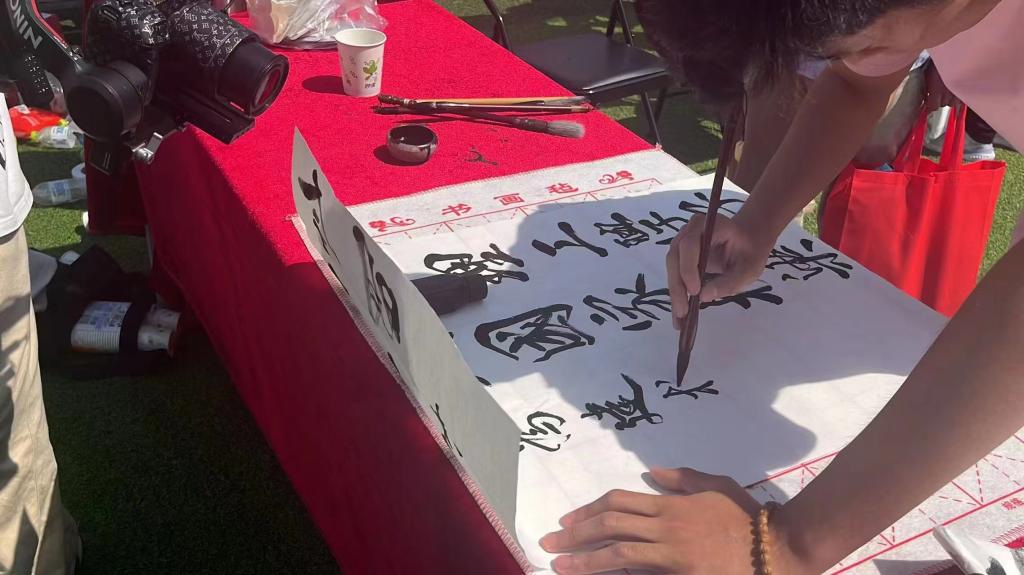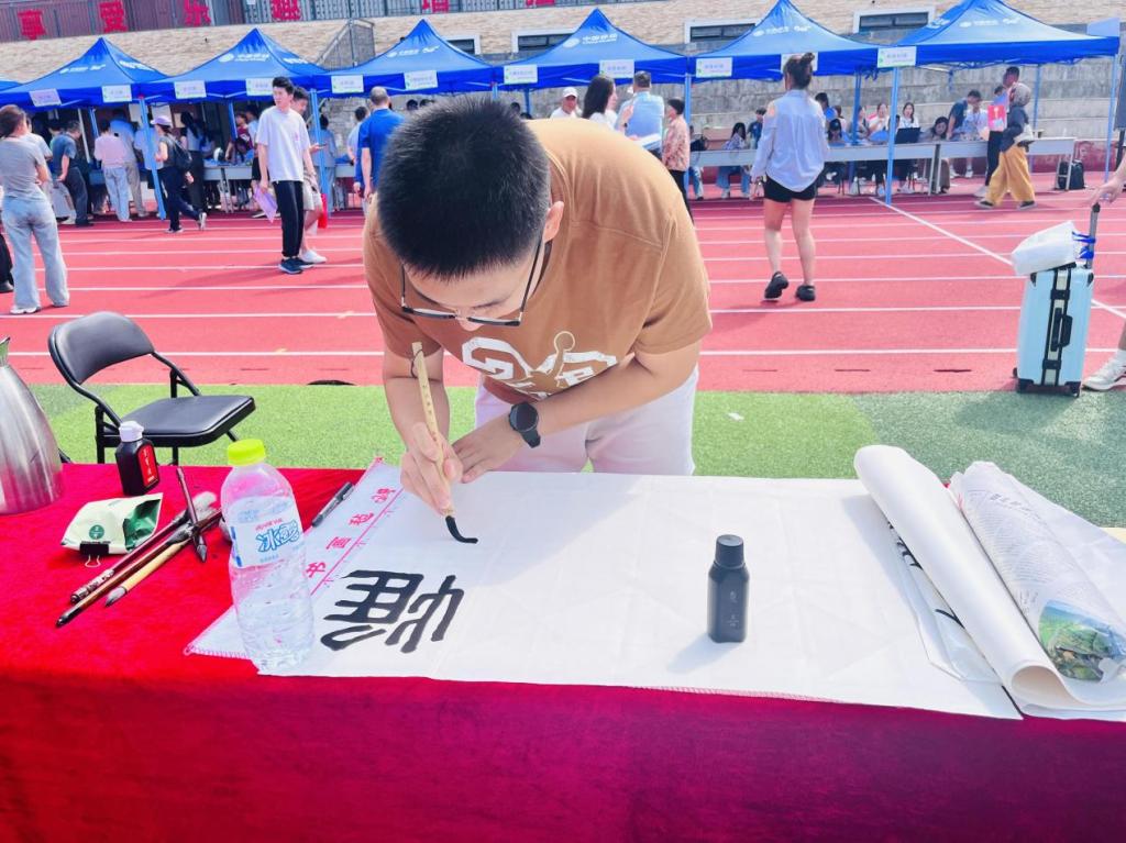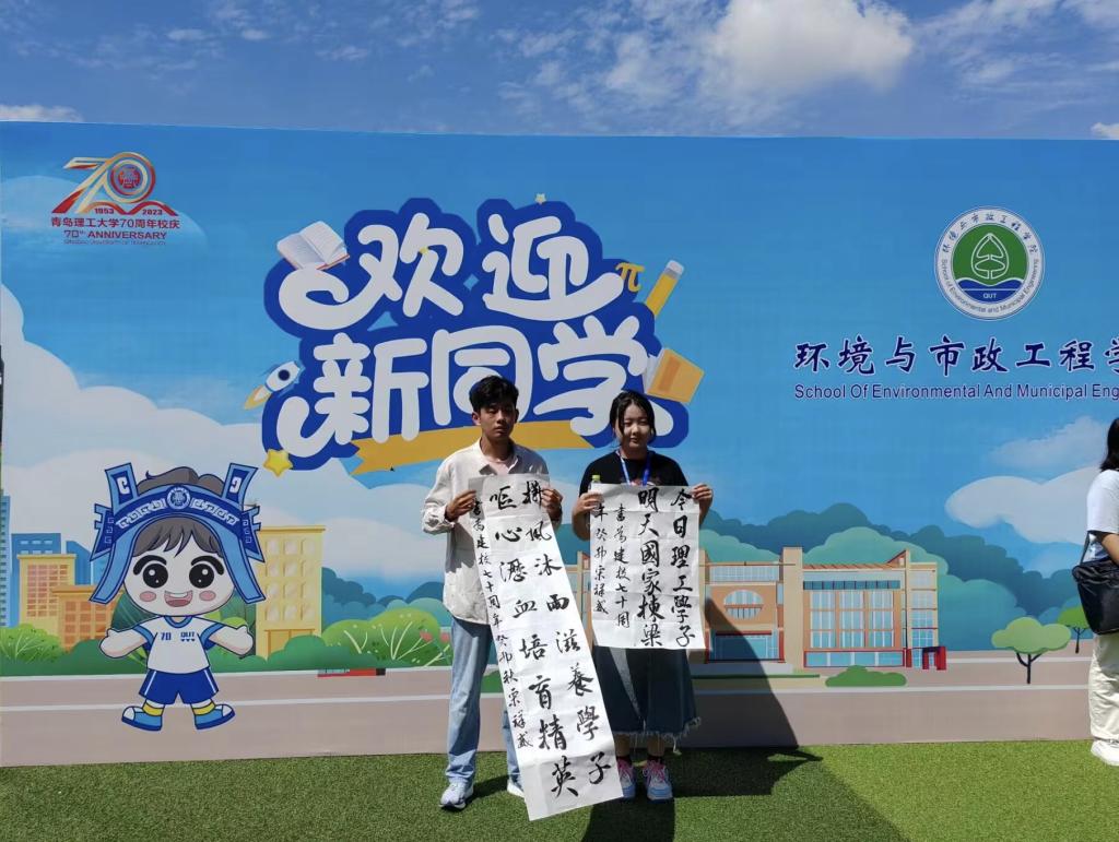 阵阵墨香指尖流,浓浓情意心脾沁。迎新现场,笔墨纸砚整齐摆放在桌子上,执笔蘸墨,一笔一划,纸上晕染着遒劲有力的汉字,新生心中翻涌着自己的缱绻情意。建环232班宋祥威写下“栉风沐雨滋养学子,呕心沥血培育精英”“今日理工学子,明天国家栋梁”送上自己对公司七十周年校庆的祝福,同时也留下自己初入大学的目标,“唯感父母恩,永怀家国情”环工232孙玉涵也将自己的感恩之心和家国之情融入书法作品中,为70周年校庆献礼。