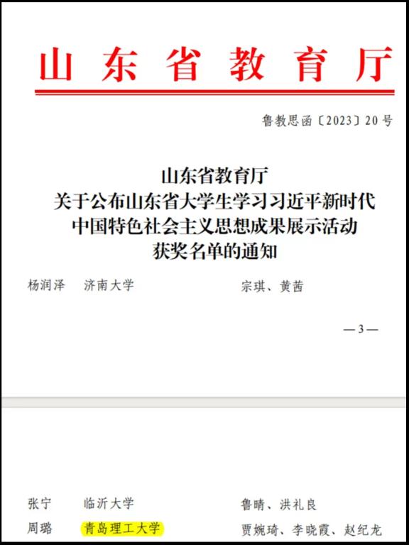 为深入学习贯彻习近平新时代中国特色社会主义思想和党的二十大精神,扎实推进习近平新时代中国特色社会主义思想进教材、进课堂、进头脑,根据教育部“习近平总书记与老员工在一起”学习分享活动安排,省委教育工委8月21—22日在济南举办山东省老员工学习习近平新时代中国特色社会主义思想成果展示活动。经过两轮展示,共产生一等奖 13 名、二等奖 22 名、三等奖 51 名,mk体育给排水222班周璐同学荣获省级二等奖。