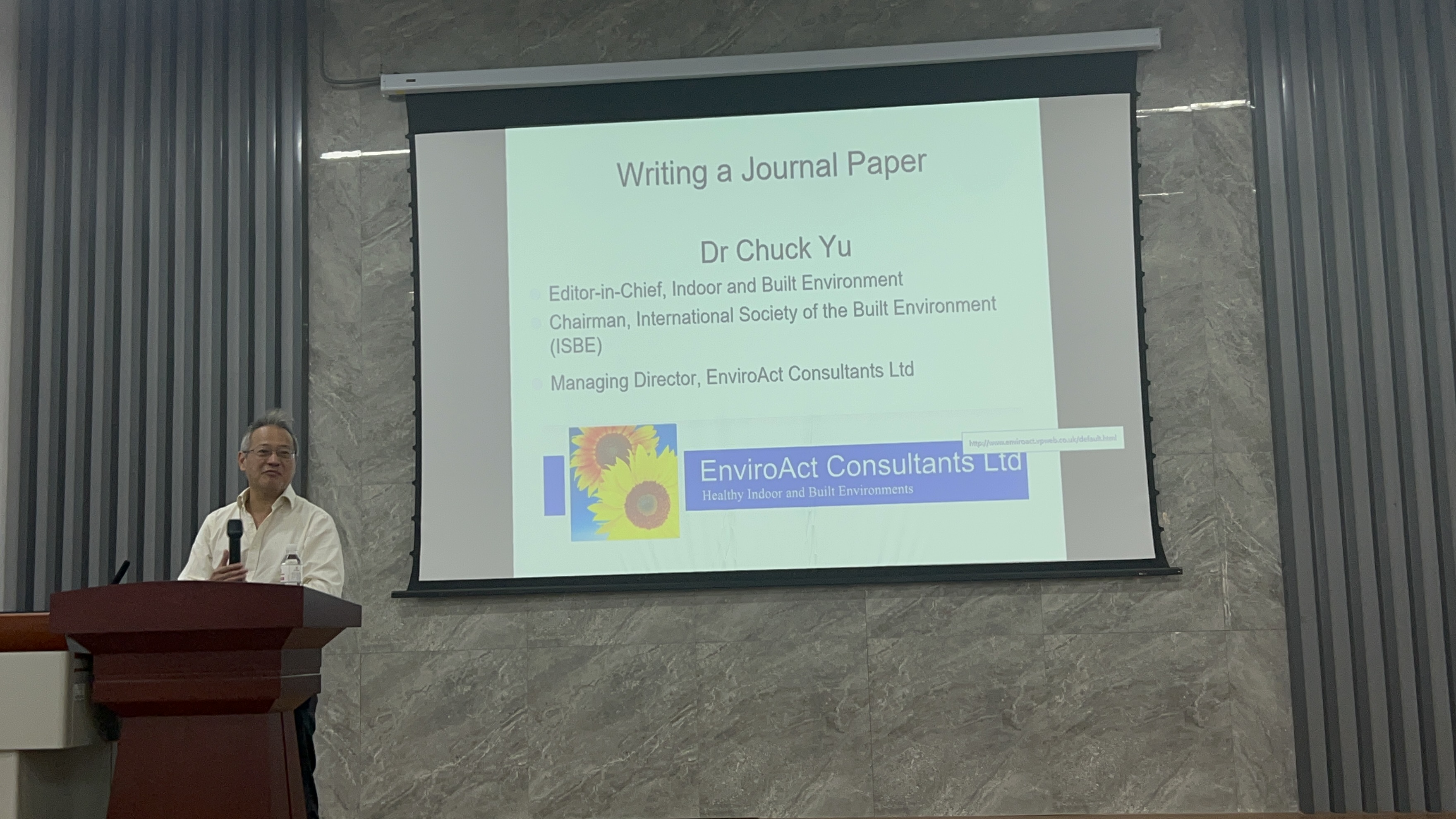 10月17日,Indoor and Built Environment主编,国际人工环境学会ISBE主席CHUCK YU教授受邀来到mkmksport,为公司百余名师生带来一场精彩的讲座。此次活动由mk体育主办,报告由mk体育朱辉副教授主持,慕名参加报告的老师同学们热情高涨,全场座无虚席。