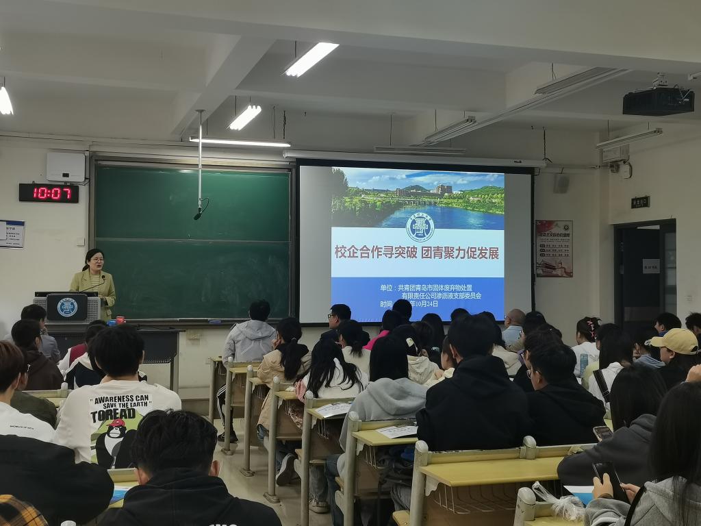 为充分贯通理论与实践知识,强化校企协同育人,实现公司与企业优势互补、资源共享、互惠互利、共同发展的目标,mk体育与共青团青岛市固体废弃物处置有限责任公司支部委员会共同举办“校企合作寻突破 团青聚力促发展”企业宣讲进课堂活动。青岛市固体废弃物处置有限责任公司团委书记、机关党支部副书记高帅,青岛小涧西渗沥液处理有限公司刘克琼、薛圆圆、安源、季翔,mk体育《固体废物处理与资源化》教学团队成员张庆建教授、卞荣星副教授出席活动,活动由mk体育学工办主任、团委书记花会娟主持。