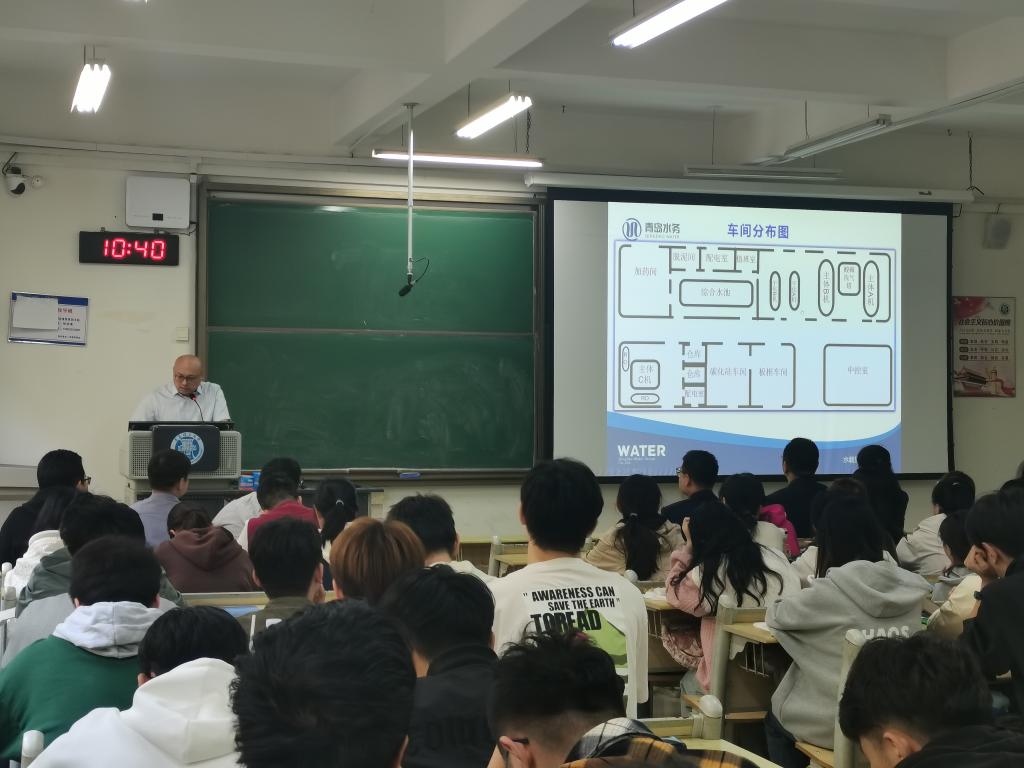 活动中青岛小涧西渗沥液处理有限公司安全生产运营部部长刘克琼向同学们介绍了固废公司渗沥液处理项目基本概况,青岛小涧西渗沥液处理有限公司安全生产运营部计划统计分析管理员、渗沥液处理工艺内训师薛圆圆给同学们生动讲解了超滤、反渗透系统工艺原理和设备概况,青岛小涧西渗沥液处理有限公司浓缩液处理车间运行班长、浓缩液处理工艺内训师安源给员工介绍了浓缩液蒸发处置工艺相关知识。随后,同学们对生活垃圾渗滤液处理的相关问题进行了提问,企业结合实际进行了详细解答。最后,高帅给同学们认真介绍了企业的情况,并就同学关心的就业、考研等问题进行了耐心的回答。
