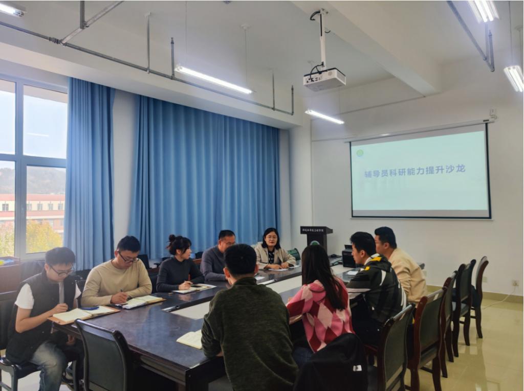 为进一步发挥工作室示范带动作用,提升辅导员科研能力,专业教育与思想政治教育双向融合研究辅导员工作室于2023年10月25日组织辅导员科研能力提升沙龙,工作室主持人花会娟主持,部分工作室成员参加。