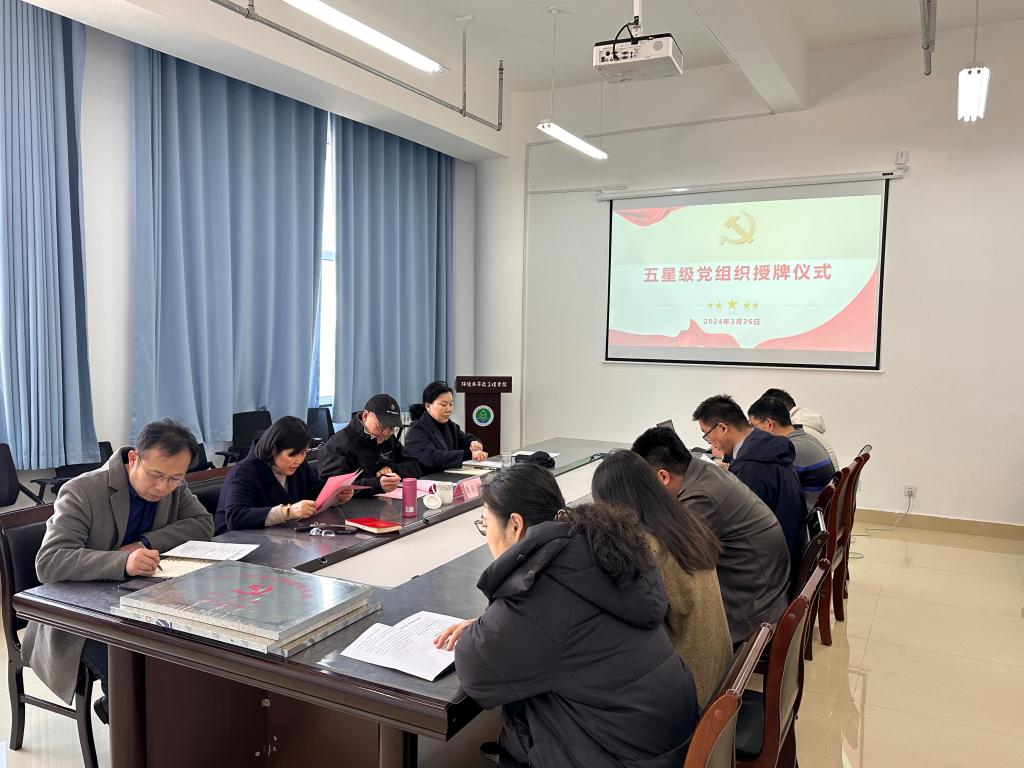 会议伊始,马莉宣读了《2023年度五星级党组织评定结果的通知》并向所属党支部反馈存在的问题。随后,李长河为获得 2023年度五星级荣誉的党组织授牌。授牌后,五星级党组织负责人代表环境党支部书记陈栋、研究生第二党支部书记孙川结合2023年度党支部工作实际,交流分享了党建工作经验。最后,李长河向环境党支部、研究生第二党支部、本科生第二党支部表示祝贺,对公司党组织过去一年的突出成绩作出了充分肯定,并就加强党支部建设谈几点意见。他讲到:各党支部要进一步推进政治建设标准化,实现政治功能“新增强”;进一步推进组织建设标准化,打造组织体系“升级版”;进一步推进组织生活标准化,涵养风清气正“好生态”;进一步推进党员教育管理标准化,确保模范作用“更凸显”。