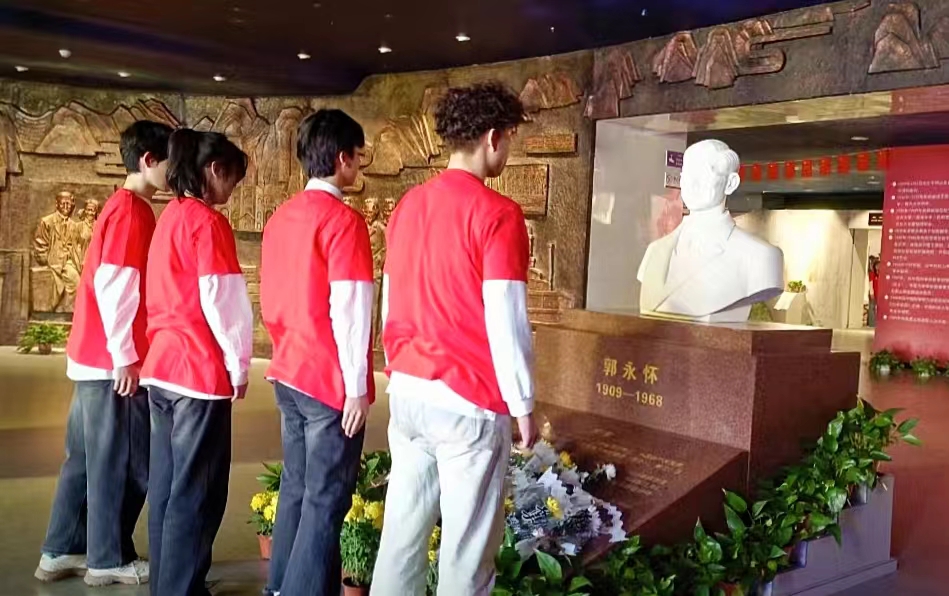 步入郭永怀事迹陈列馆大厅,郭永怀先生雕像静静伫立着,师生代表将寄托哀思的白色菊花轻轻地放在雕像前。一间间展厅里面珍藏着是关于郭永怀先生的记忆,在一封郭永怀写给女儿的信前,研学团队矗立良久,“这是永怀先生生前最后一封写给女儿的信——一个父亲永远无法兑现的一双‘布鞋’承诺。”讲解员告诉大家,这封信后不久,郭永怀先生在一次飞机事故中壮烈牺牲,永远地离开了他深爱的祖国和深爱着他的家人,这也就是那个“唯一”的来源。