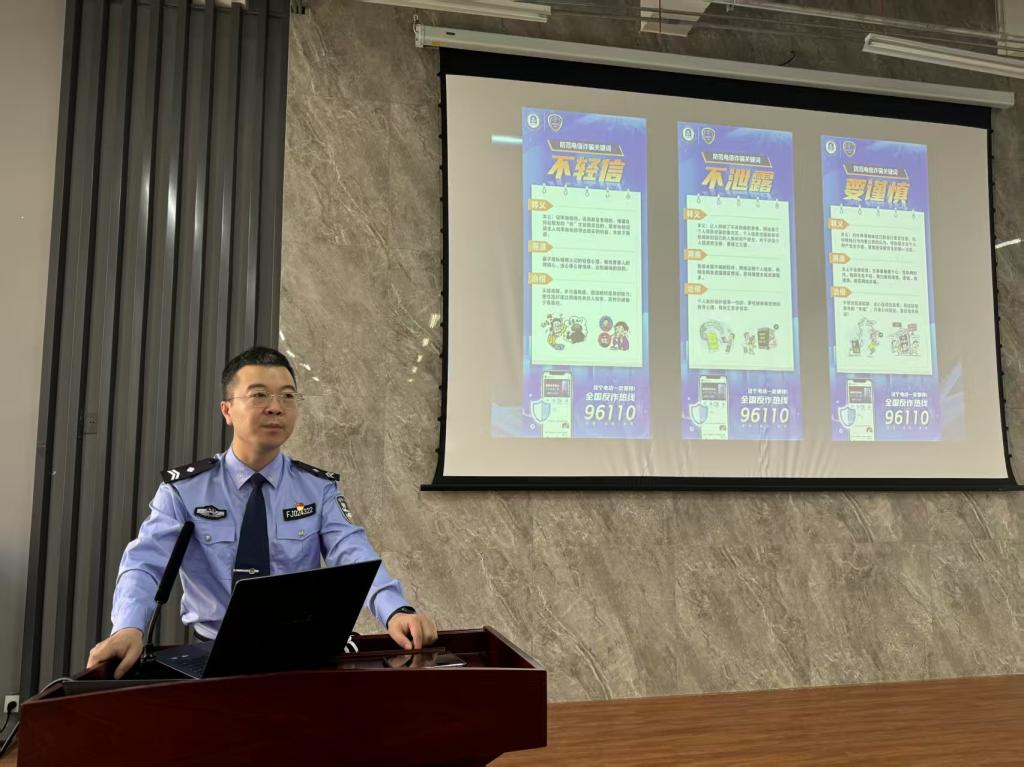 为切实提高老员工防范电信诈骗的意识和能力,保障员工人身和财产安全,推动反诈教育入脑入心入耳,4月30日下午,mkmksport安全管理处联合mk体育,邀请了开发区刑警大队反诈中心的杨丰鸿警官,在嘉陵江路校区C2-3公司楼202报告厅开展防范电信诈骗主题教育活动。安全管理处副处长申维东、公司党委副书记、副经理隋学智、公司辅导员代表及100余名员工代表参加了此次活动。