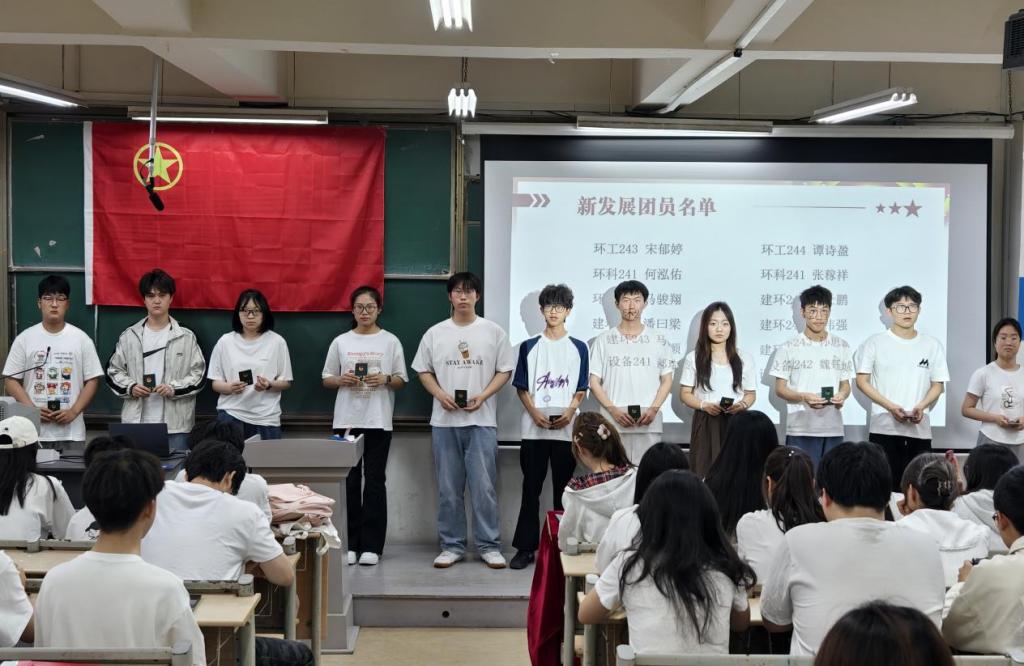 入团介绍人代表季龙畅宣读《团章》中的条款,强调要做一个有理想、敢担当、能吃苦、肯奋斗的新时代好青年。新团员代表郝瑞玲发言,她的声音激动而坚定,表达了对团组织的向往与崇敬,以及成为一名共青团员的骄傲与自豪。接着,老团员代表安书睿向新团员们表示热烈祝贺,并对他们提出殷切期望。她强调,共青团员是党的助手和后备军,新团员们要坚定理想信念,树立远大抱负;勤奋学习知识,提升自身素养;积极投身实践,勇担时代责任。