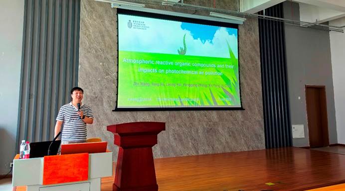 王哲教授作了题为"大气活性有机化合物及其对光化学污染的影响(Atmospheric Reactive Organic Compounds and Their Impacts on Photochemical Air Pollution)"的学术报告,报告由mk体育陈栋副经理主持。报告详细介绍了其团队在含氧挥发性有机物离线增强检测、通过高精度在线化学离子化质谱技术等多种手段揭示活性氮氧化物和挥发性有机物在大气中复杂氧化过程等方面的研究进展。