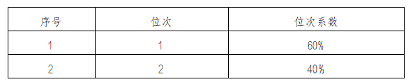 2.2.8.参加志愿服务(Z4)。员工在社会实践、志愿服务、慈善公益等活动中有突出事迹受到地市级及以上官方表彰奖励。个人项目分别计100分(国家级)、80分(省部级)和50分(地市级),集体项目得分有位次的按照下表计算系数,没有位次的得分均分到全体成员,团队负责人得分加倍。